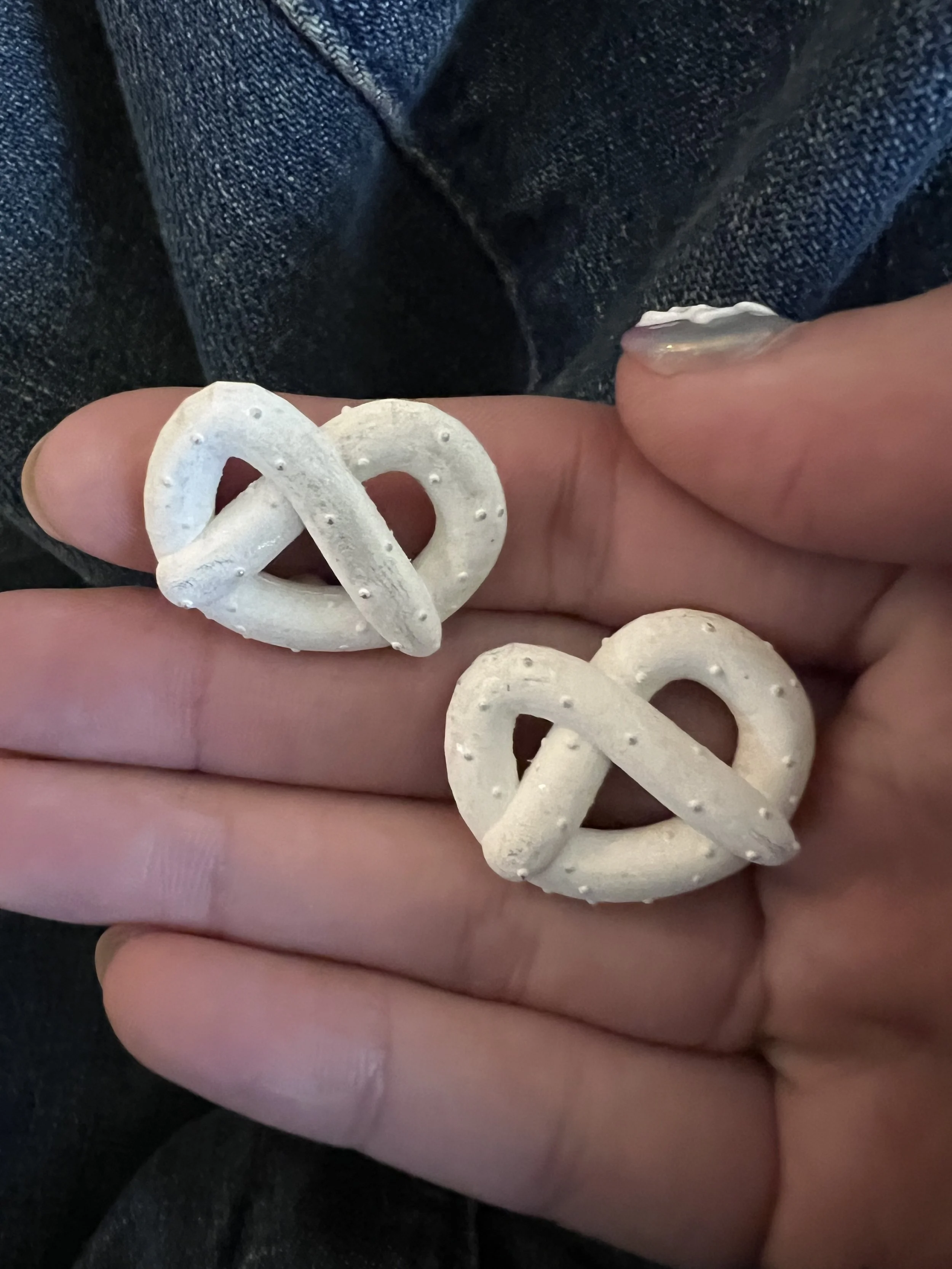 By examining the pretzel’s iconic twisted structure, I translated its playful geometry into an earring that balances humor with elegance.